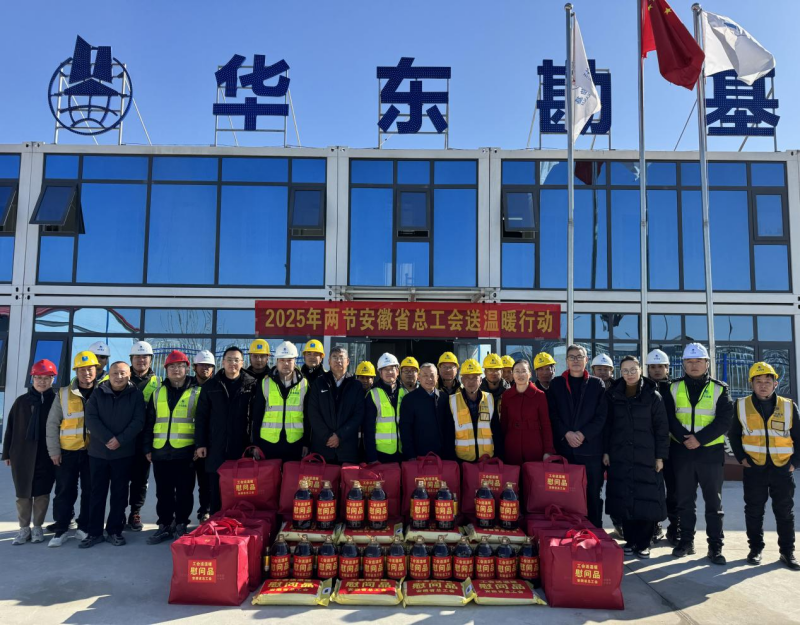 1月15日上午,安徽省總工會黨組成員、副主席陳金紅,安徽省省部屬(直管)企事業(yè)工會主席王崢等一行深入勘基總公司高新區(qū)訊飛小鎮(zhèn)保障性住房項目EPC總承包工程項目部開展“兩節(jié)”走訪慰問送溫暖活動。局黨委書記、局長袁兆杰,局工會、勘基總公司負責同志陪同慰問。